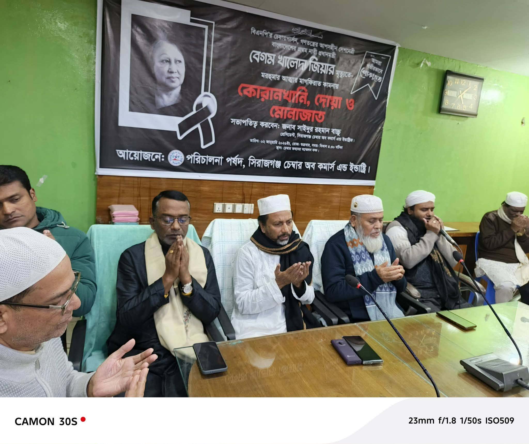 সিরাজগঞ্জ চেম্বার অব কমার্স অ্যান্ড ইন্ডাস্ট্রির আয়োজনে সাবেক প্রধানমন্ত্রী মরহুমা বেগম খালেদা জিয়ার মাগফিরাত কামনায় কোরআনখানি, দোয়া-মোনাজাত ও শোকসভা অনুষ্ঠিত।