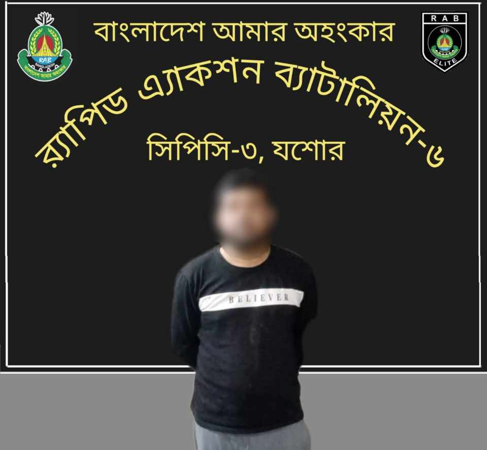 র্যাব-৬, সিপিসি-৩ (যশোর ক্যাম্প) সূত্রে জানা গেছে, গোপন সংবাদের ভিত্তিতে বৃহস্পতিবার (৮ জানুয়ারি) দুপুর ২:৩০ মিনিটে যশোর কোতোয়ালি মডেল থানাধীন নীলগঞ্জ তাঁতীপাড়া এলাকায় বিশেষ অভিযান চালানো হয়। অভিযানে আব্দুল মজিদ (৪৫) নামে এক ব্যক্তিকে গ্রেফতার করা হয়। তিনি ওই এলাকার মৃত শেখ এনায়েত উল্লাহর ছেলে।