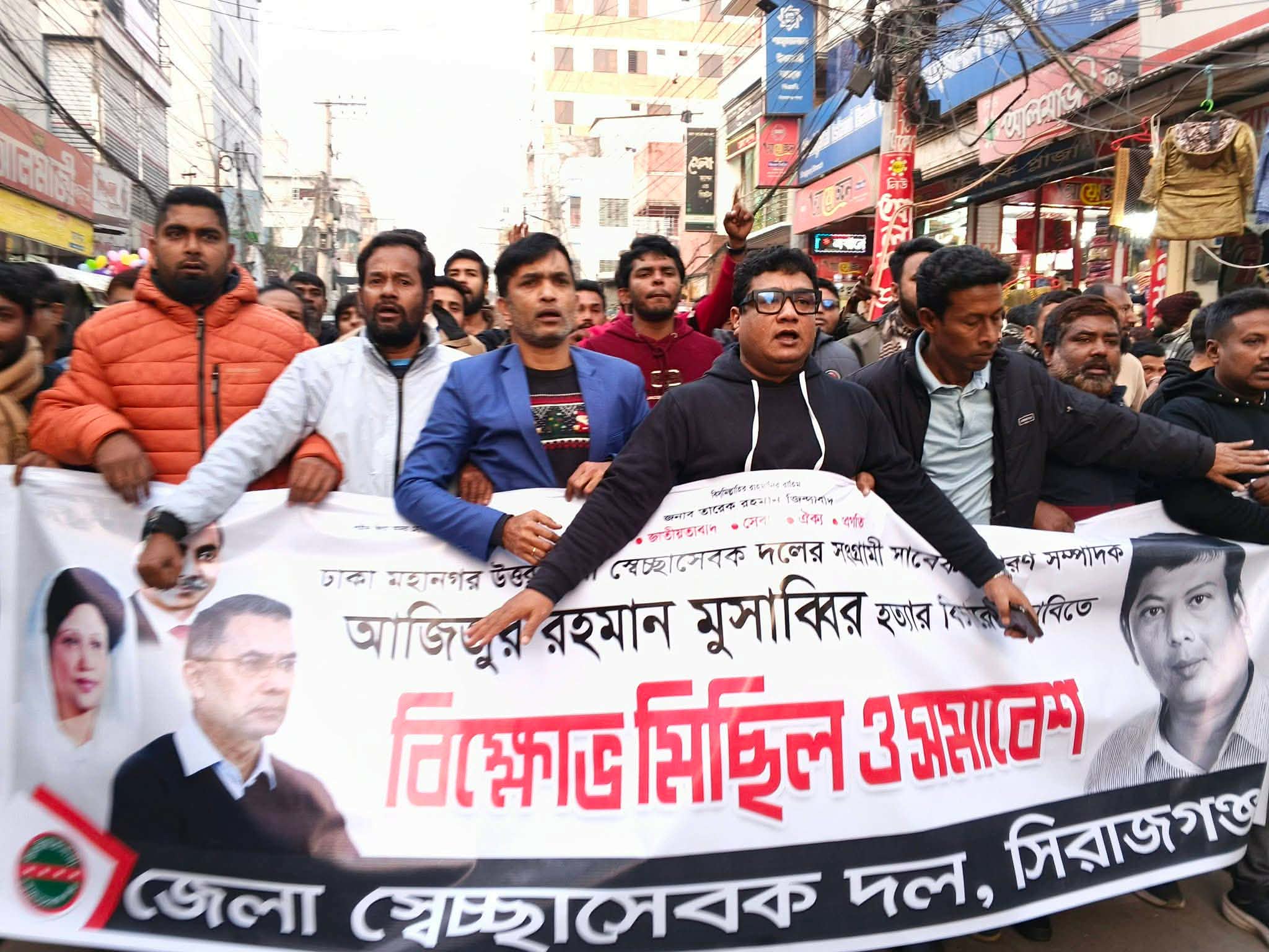 ঢাকা মহানগর উত্তর স্বেচ্ছাসেবক দলের সাবেক সাধারণ সম্পাদক হত্যার প্রতিবাদে সিরাজগঞ্জে প্রতিবাদ সভা ও বিক্ষোভ মিছিল