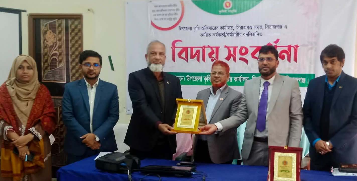 সিরাজগঞ্জ সদর উপজেলা কৃষি উপসহকারী উদ্ভিদ সংরক্ষণ কর্মকর্তা রেজাউল করিমের বিদায় সংবর্ধনা অনুষ্ঠিত