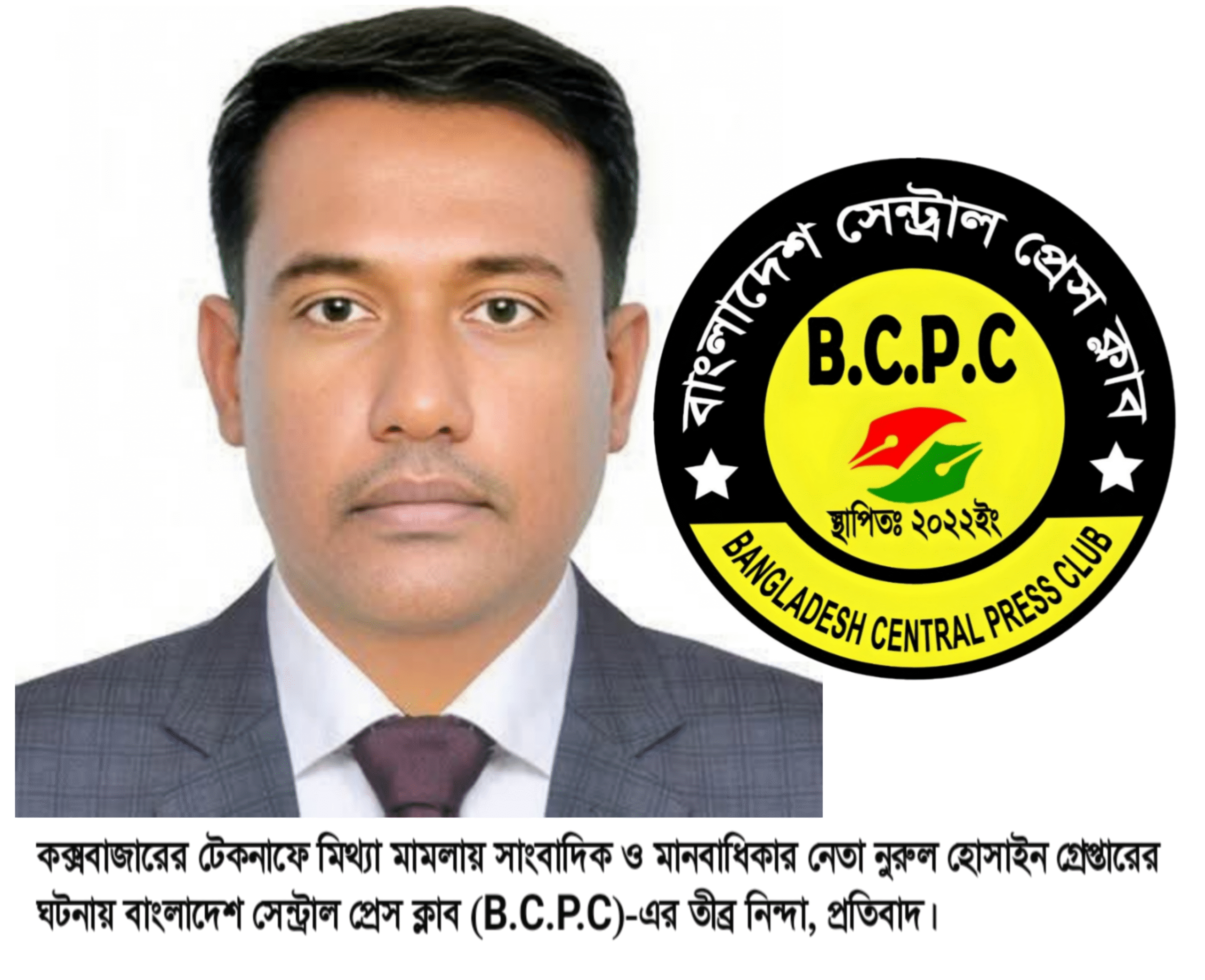 মিথ্যা মামলায় সাংবাদিক ও মানবাধিকার নেতা নুরুল হোসাইন গ্রেপ্তারের ঘটনায় বাংলাদেশ সেন্ট্রাল প্রেস ক্লাব (B.C.P.C)-এর তীব্র নিন্দা, প্রতিবাদ ও ক্ষোভ প্রকাশ।