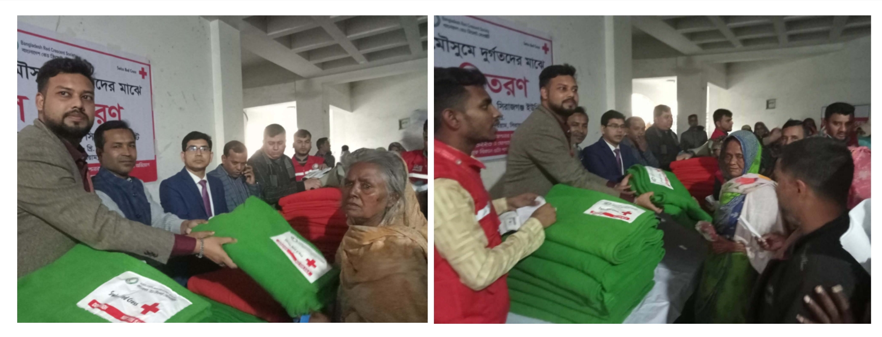 সিরাজগঞ্জে ৬শত শীতার্ত মানুষের মাঝে কম্বল বিতরণ করল রেড ক্রিসেন্ট সোসাইটি।