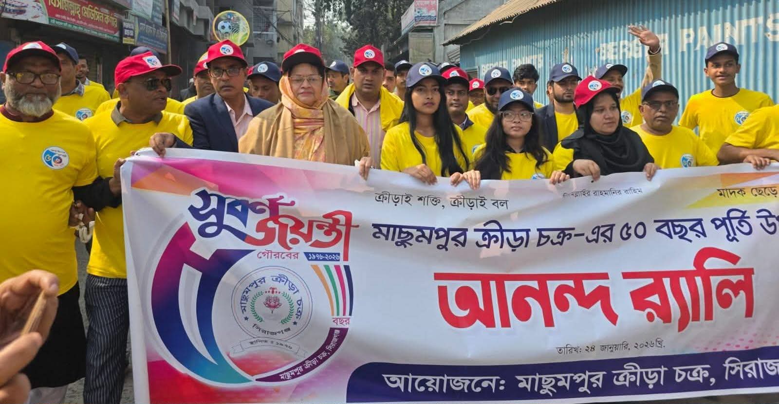সিরাজগঞ্জে মাছুমপুর ক্রীড়া চক্রের ৫০ বছর পূর্তি উপলক্ষে সুবর্ণজয়ন্তী উৎসব আনন্দ শোভাযাত্রা ও প্রীতি ফুটবল প্রতিযোগিতা অনুষ্ঠিত।