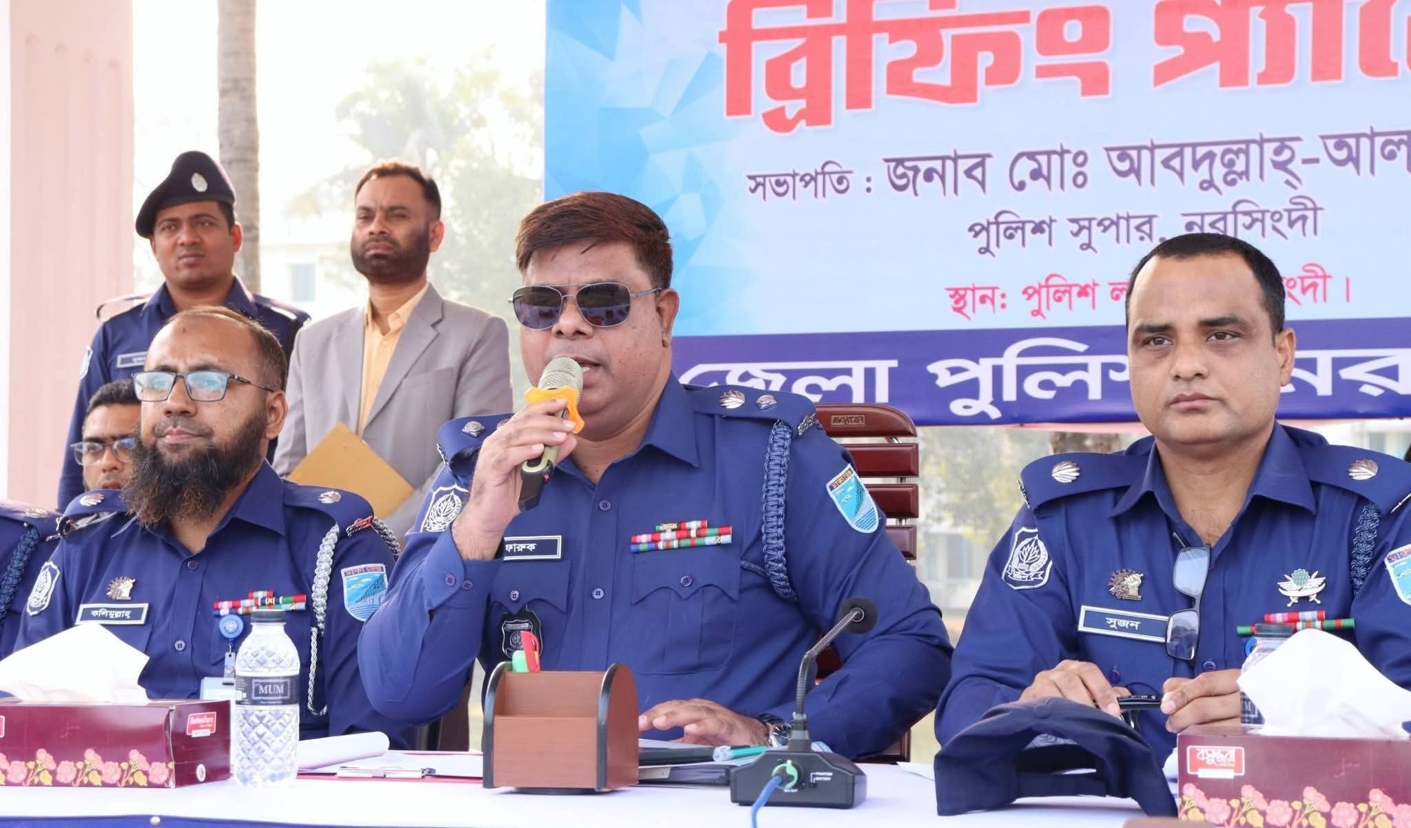 রবিবার (৮ ফেব্রুয়ারি) নরসিংদী জেলা পুলিশ লাইন্স মাঠে অনুষ্ঠিত এ ব্রিফিং প্যারেডে প্রধান অতিথি হিসেবে উপস্থিত ছিলেন নরসিংদী জেলার পুলিশ সুপার মো. আবদুল্লাহ্ আল-ফারুক।