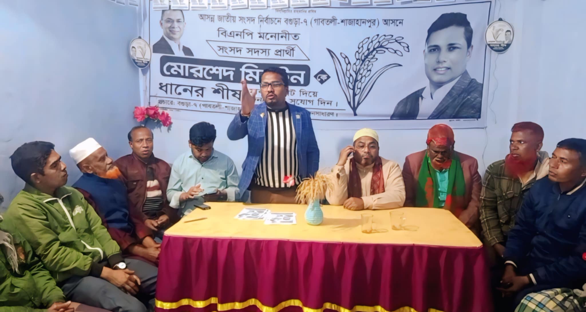 শাজাহানপুরে (বগুড়া-৭) ধানের শীষ প্রতীকের নির্বাচনী প্রচারণা সুষ্ঠু বাস্তবায়নে আলোচনা সভা।