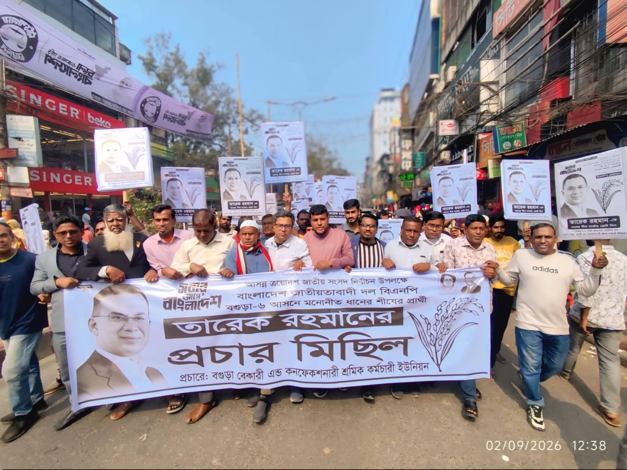 বগুড়া-৬ আসনে তারেক রহমানের পক্ষে ধানের শীষে ভোট দিতে বেকারি শ্রমিক ইউনিয়নের বর্ণাঢ্য মিছিল