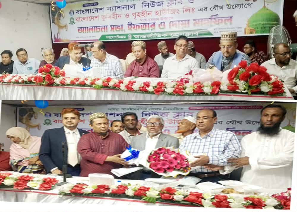 বাংলাদেশ ন্যাশনাল নিউজ ক্লাব ও বাংলাদেশ ভূমিহীন ও গৃহহীন হাউজিং লিমিটেডের যৌথ উদ্যোগে পবিত্র ১৩ই রমজান, ৩ মার্চ (মঙ্গলবার) রাজধানীর বাংলাদেশ শিশু কল্যাণ পরিষদ মিলনায়তনে বিকাল ৩টায় আলোচনা সভা, ইফতার ও দোয়া মাহফিল অনুষ্ঠিত হয়।