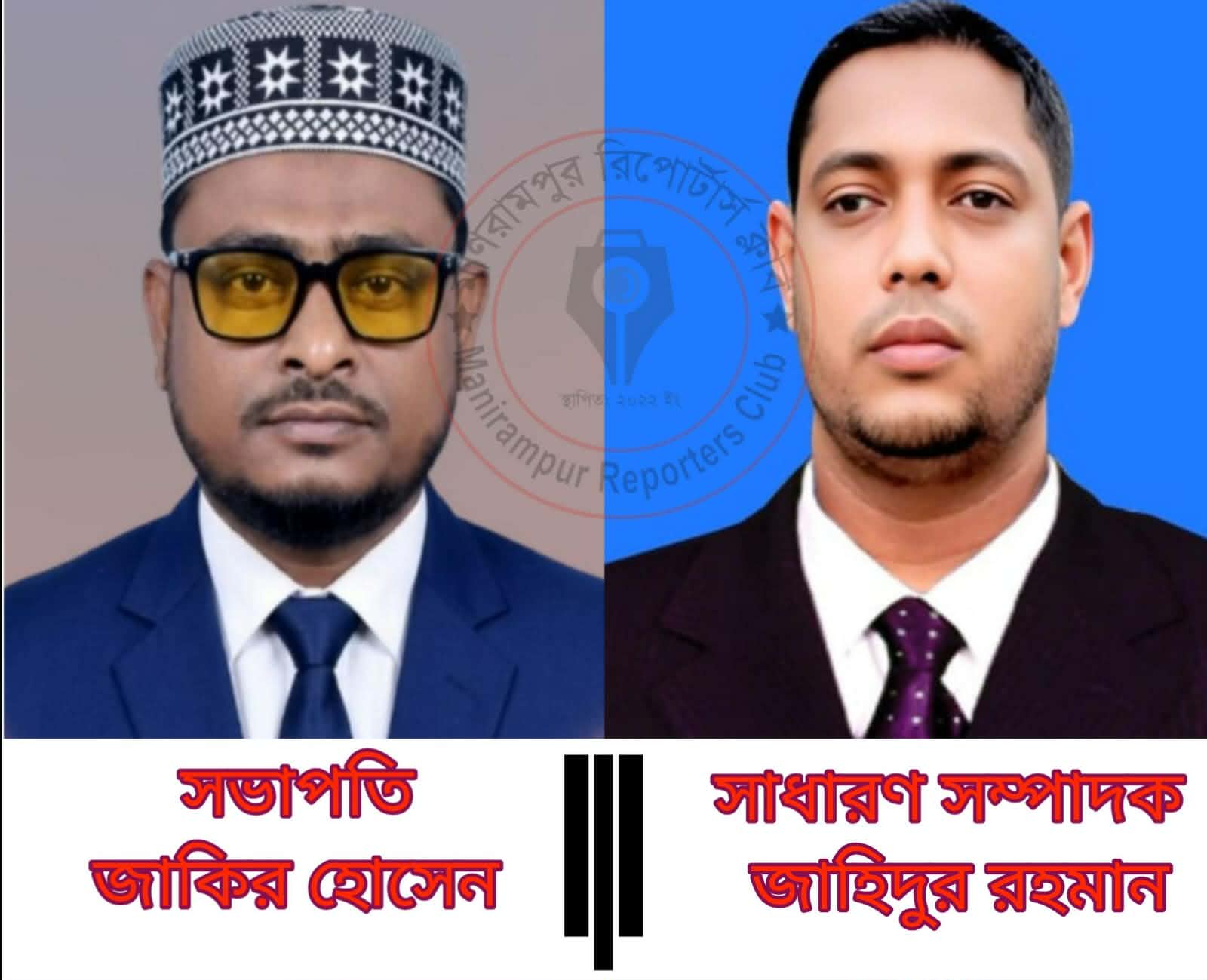 মণিরামপুর রিপোর্টার্স ক্লাবের নির্বাচনে জাকির সভাপতি ও জাহিদুর সাধারণ সম্পাদক নির্বাচিত