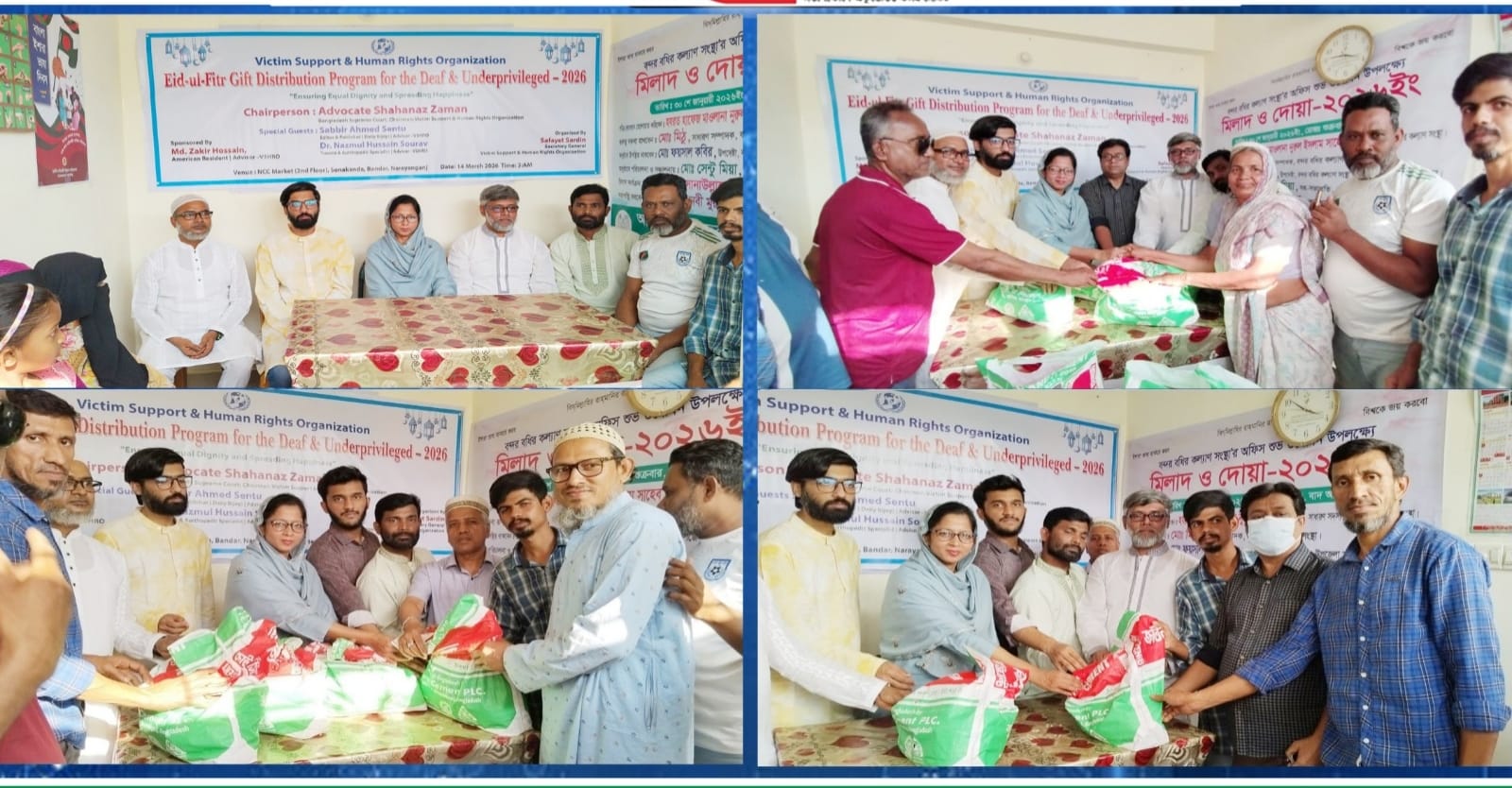 নারায়ণগঞ্জের বন্দরে বধির কল্যাণ সংস্থার সদস্যদের মাঝে ঈদ সামগ্রী বিতরণ করেছে ভিকটিম সাপোর্ট এন্ড হিউম্যান রাইটস অর্গানাইজেশন।
