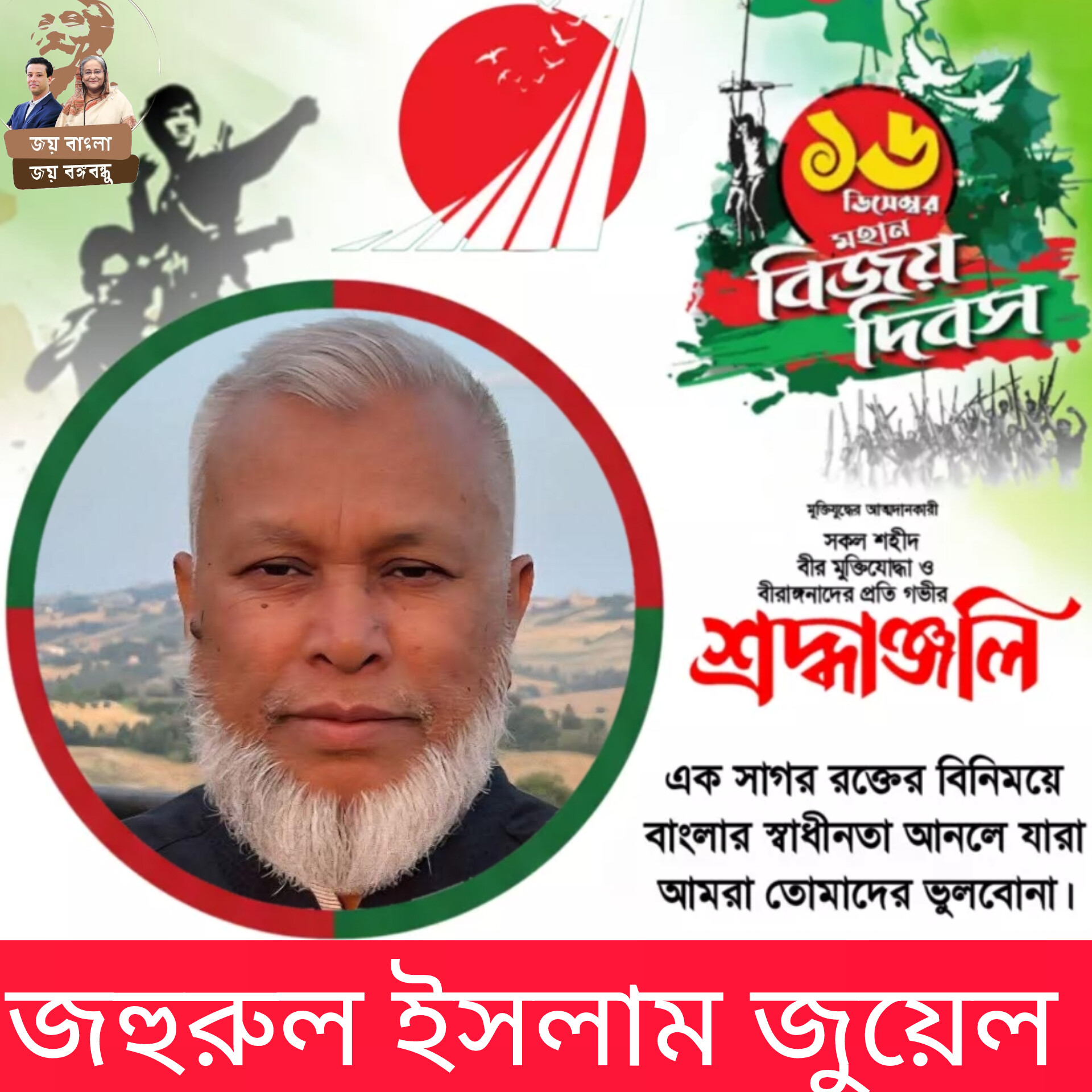 জহুরুল ইসলাম জুয়েল, গভীর শ্রদ্ধা ও ভালোবাসার সাথে বাংলাদেশের সকল দেশবাসী এবং বিশ্বের আনাচে-কানাচে ছড়িয়ে থাকা প্রবাসী ভাই-বোনদের জানাই মহান বিজয় দিবসের (১৬ ডিসেম্বর) আন্তরিক শুভেচ্ছা ও অভিনন্দন।