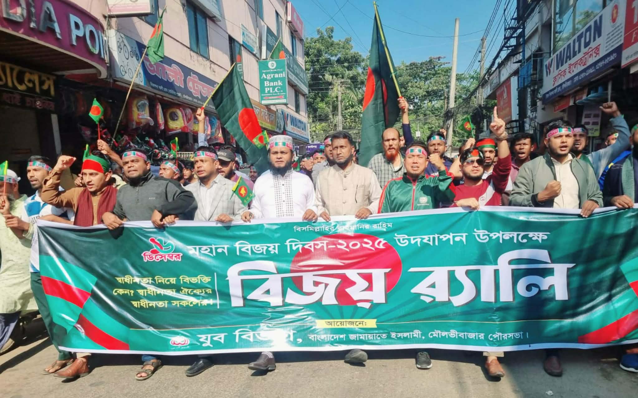 মোঃ জালাল উদ্দিন নিজস্ব প্রতিবেদক: মহান বিজয় দিবস উপলক্ষে বাংলাদেশ জামায়াতে ইসলামী মৌলভীবাজার পৌর যুব বিভাগের উদ্যোগে এক বর্ণাঢ্য বিজয় র্যালি ও সমাবেশ অনুষ্ঠিত হয়েছে।