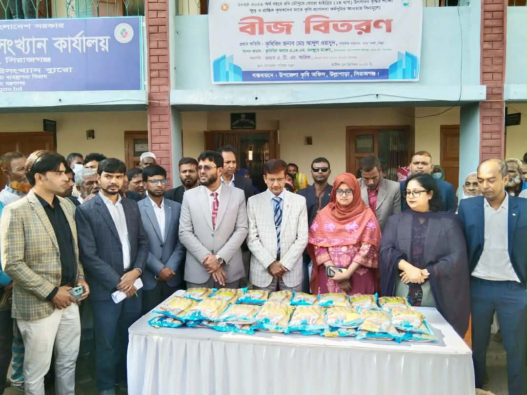 কৃষি প্রণোদনা কর্মসূচির আওতায়- সিরাজগঞ্জের উল্লাপাড়া উপজেলার ক্ষুদ্র ও প্রান্তিক নয়শত জন কৃষক-কৃষাণীদের মাঝে বিনামূল্যে বোরো সুপার হাইব্রিড ধানবীজ বিতরণ করা হয়। ২০২৫-২৬ অর্থ বছরে উৎপাদন বৃদ্ধির ও খাদ্য নিরাপত্তা নিশ্চিত করার লক্ষ্যে- রবি মৌসুমে এই বীজ বিতরণ কার্যক্রম বাস্তবায়ন করা হয়। উল্লাপাড়া উপজেলা কৃষি সম্প্রসারণ অধিদপ্তর,সিরাজগঞ্জের উদ্যোগে - বুধবার (১৭ ডিসেম্বর-২০২৫ খ্রিঃ) উল্লাপাড়া উপজেলা পরিষদ প্রাঙ্গণে উক্ত অনুষ্ঠানে প্রধান অতিথি হিসেবে উপস্থিত থেকে কৃষক- কৃষাণীদের হাতে ধানবীজ প্যাকেট তুলে দিয়ে কর্মসূচি'র উদ্বোধন করেন, কৃষি সম্প্রসারণ অধিদপ্তর, বগুড়া অঞ্চল, বগুড়ার অতিরিক্ত পরিচালক- কৃষিবিদ মোঃ আব্দুল ওয়াদুদ। এ বিতরণ কার্যক্রম অনুষ্ঠানে সভাপতিত্ব করেন, সহকারী কমিশনার শারমিন আক্তার রিমা। বিশেষ অতিথি হিসেবে উপস্থিত ছিলেন, কৃষি সম্প্রসারণ অধিদপ্তর খামার বাড়ী সিরাজগঞ্জ উপ-পরিচালক এ. কে.এম. মনজুরে মাওলা। স্বাগত বক্তব্য রাখেন, উল্লাপাড়া উপজেলা কৃষি অফিসার কৃষিবিদ সুবর্ণা ইয়াসমীন-সুমী। উপজেলার একটি পৌরসভা ও সকল ইউনিয়নের ৯০০ জন সুবিধাভোগী কৃষকেরা ২ কেজি করে বোরো হাইব্রিড ধানবীজ প্যাকেট বিতরণ করা হয়।