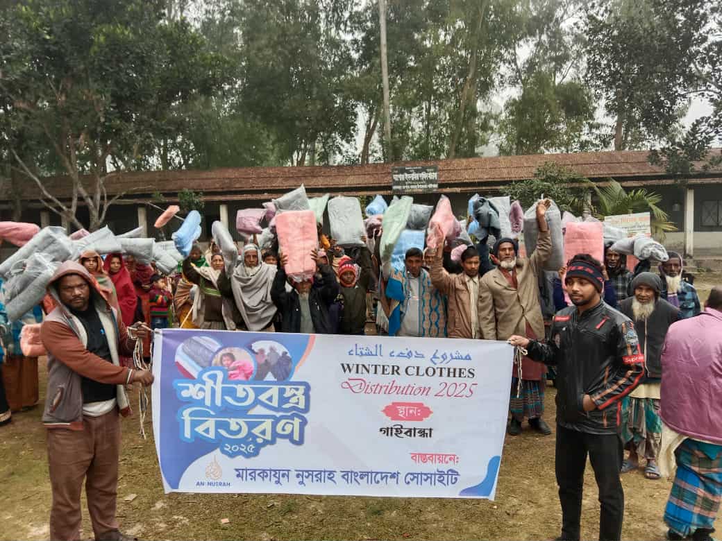 মারকাযুন নুসরা বাংলাদেশ সোসাইটির পক্ষ থেকে জানানো হয়, প্রতি বছরের ন্যায় এ বছরও দেশের বিভিন্ন প্রান্তে তাদের এই মানবিক সহায়তা কার্যক্রম অব্যাহত রয়েছে। গাইবান্ধার পর দেশের অন্যান্য জেলাগুলোতেও পর্যায়ক্রমে শীতবস্ত্র পৌঁছে দেওয়া হবে।