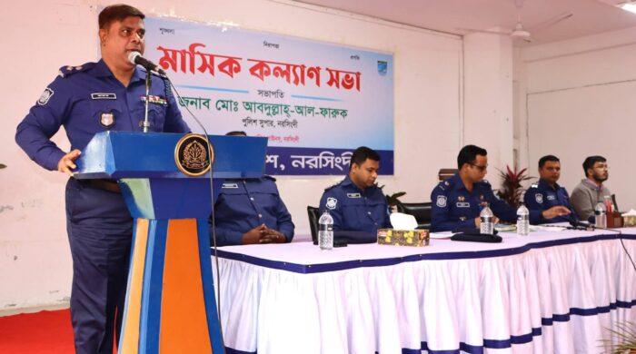 আবু নাঈম রিপন: নরসিংদী প্রতিনিধি:- নরসিংদীতে ২১ ডিসেম্বর ২০২৫ ইং রবিবার নরসিংদী পুলিশ লাইন্সে জেলা পুলিশ এর মাসিক কল্যাণ সভা অনুষ্ঠিত হয়েছে। নরসিংদী জেলা পুলিশ সুপার মোঃ আবদুল্লাহ্ আল ফারুক