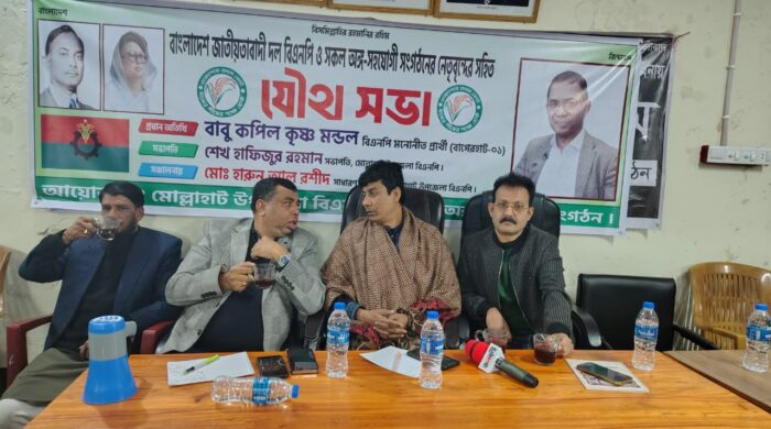 আব্দুল্লাহ ফারুক (বাগেরহাট) প্রতিনিধি: আসন্ন জাতীয় সংসদ নির্বাচনে বাগেরহাট–১ (মোল্লাহাট–ফকিরহাট–চট্টগ্রাম) আসন থেকে বাংলাদেশ জাতীয়তাবাদী দল (বিএনপি) সমর্থিত সংসদীয় প্রার্থী হিসেবে নির্বাচনে অংশগ্রহণের লক্ষ্যে একটি নির্বাচনকালীন যৌথ সভা অনুষ্ঠিত হয়েছে। আজ