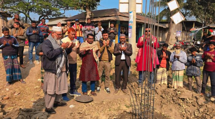 তাজুল ইসলাম (বিশেষ প্রতিনিধি), বগুড়া: বগুড়া জেলার শাজাহানপুর উপজেলার মাদলা ইউনিয়নের দড়িনন্দগ্রাম এলাকায় বিসমিল্লাহ সুপার মার্কেট ও মসজিদ কমপ্লেক্স-এর শুভ ভিত্তিপ্রস্তর স্থাপন করা হয়েছে। শুক্রবার (১৬ জানুয়ারি) জুমার নামাজ