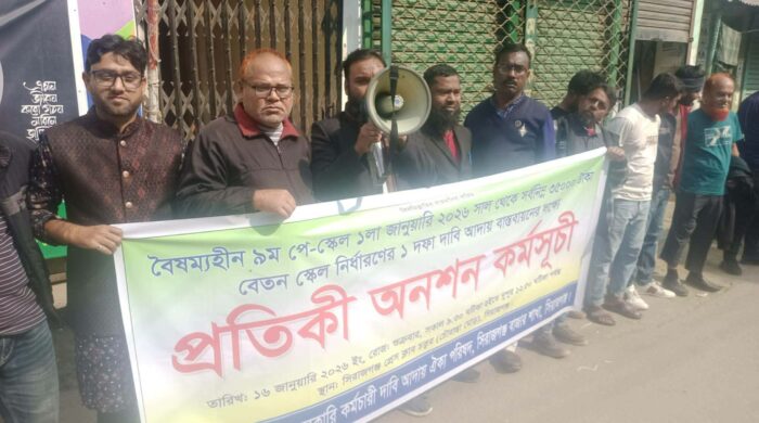 আজিজুর রহমান মুন্না, সিরাজগঞ্জ প্রতিনিধি : বৈষম্যহীন নবম পে-স্কেল বাস্তবায়ন ও সর্বনিম্ন ৩৫ হাজার টাকা বেতন স্কেল নির্ধারণের এক দফা দাবি আদায়ের লক্ষ্যে সিরাজগঞ্জে প্রতীকী অনশন কর্মসূচি পালন করেছেন রেলওয়ে